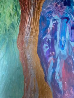 I am a self-taught artist working primarily with acrylics, metallics, oils, and mineral-based paints. My creative journey has been deeply influenced by a life of extensive travel, most notably the 25 years I spent living in a small mountain town in Colorado, USA.